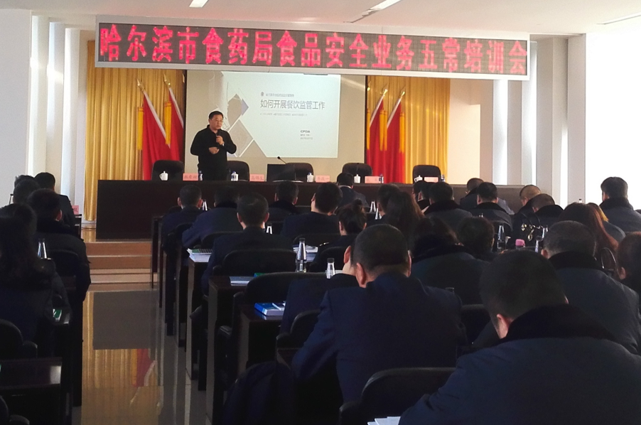 培训会上,哈市食药局餐饮处齐政一处长,就如何开展餐饮监管工作及餐饮监管工作要点进行了深入浅出的讲解,主任科员韩希研对《哈尔滨市小经营核准管理办法》及《黑龙江省食品生产经营风险分级管理工作规范(试行)》进行了深入的剖析。五常市市场局局长耿军、主管食品安全副局长李林双带领全体基层监管工作人员虚心听取了二位专家的授课。通过齐处长列举的经典案例,执法人员对餐饮监管工作重点有了更深入的了解,突破了重大活动餐饮安全保障、农村集体聚餐等餐饮监管工作难点和瓶颈。本次培训历时一天,通过培训学习,我局基层执法工作人员在餐饮监管和小经营核准管理等工作方面的法律法规知识掌握情况得到了整体的提高。